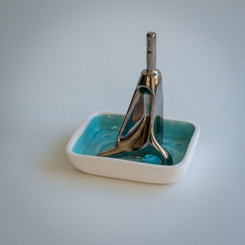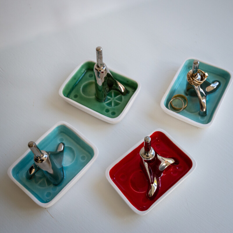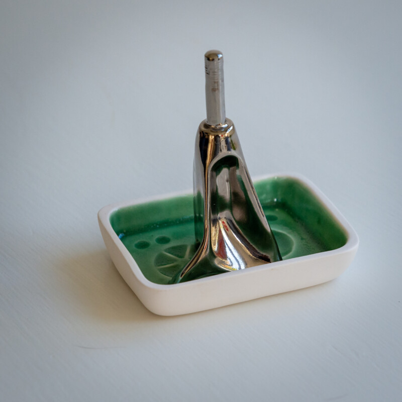 I design, assemble, glaze and fire each piece in my home studio. I make all my own molds from hand-sculpted shapes and found objects.